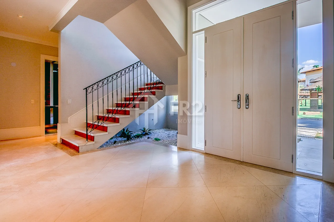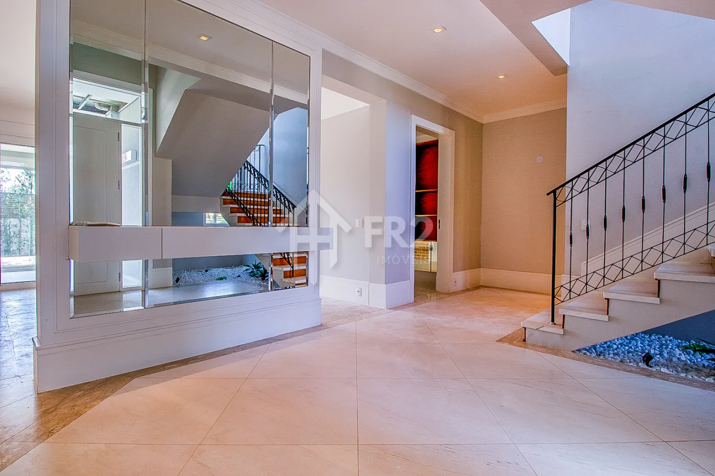 Entrada social com Hall, Home theater, Living dois ambientes com lareira, Escritório com lavabo,