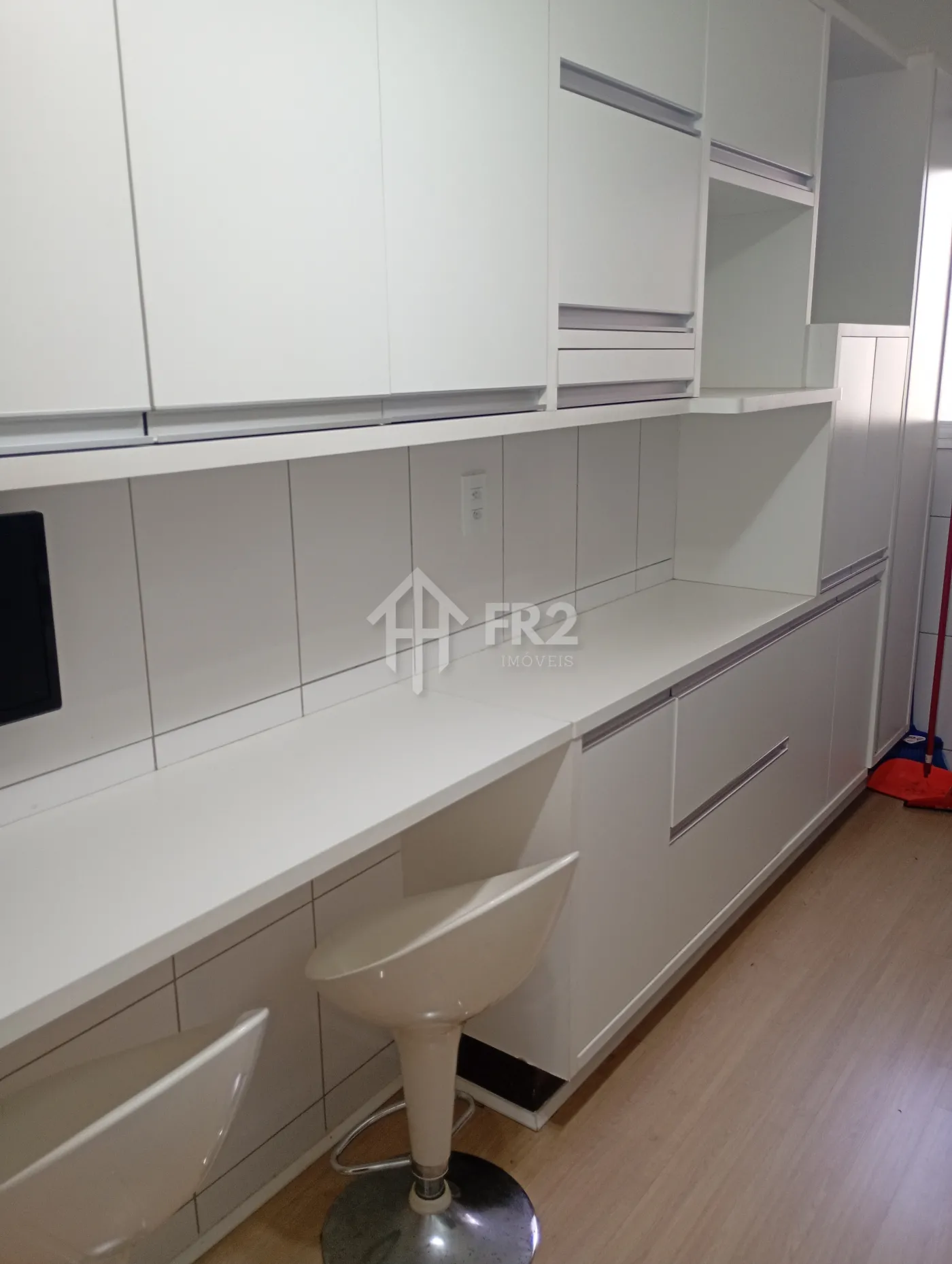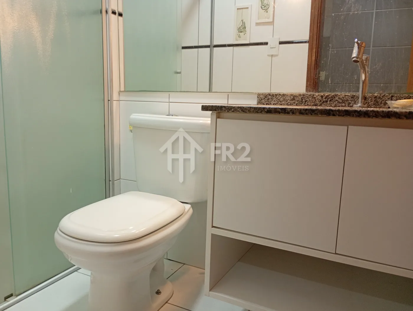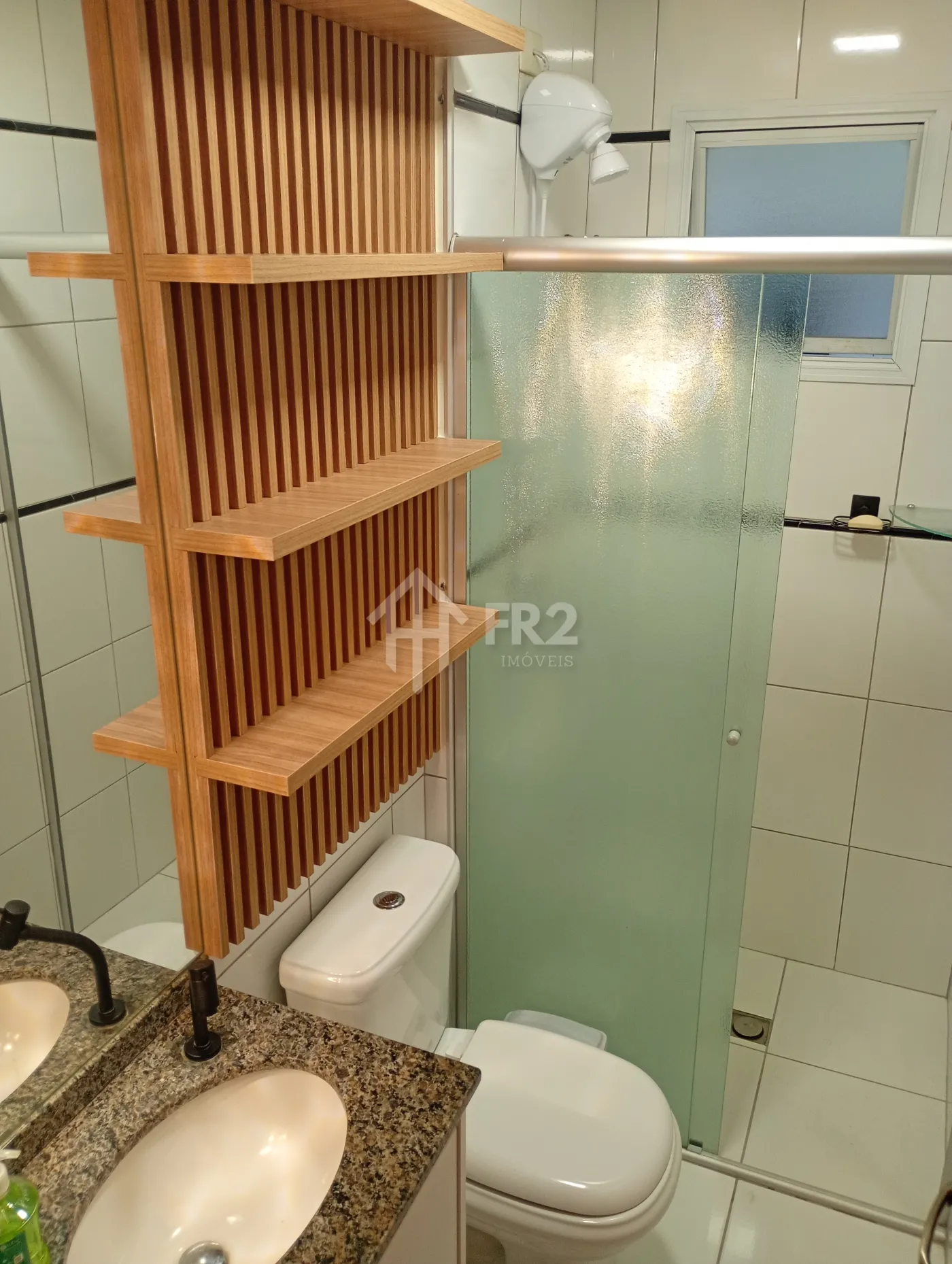 Os banheiros são completos, com box em vidro e gabinetes planejados, oferecendo funcionalidade e um toque moderno. A cozinha e a área de serviço são ricas em armários, ideais para o dia a dia com praticidade e excelente aproveitamento de espaço.