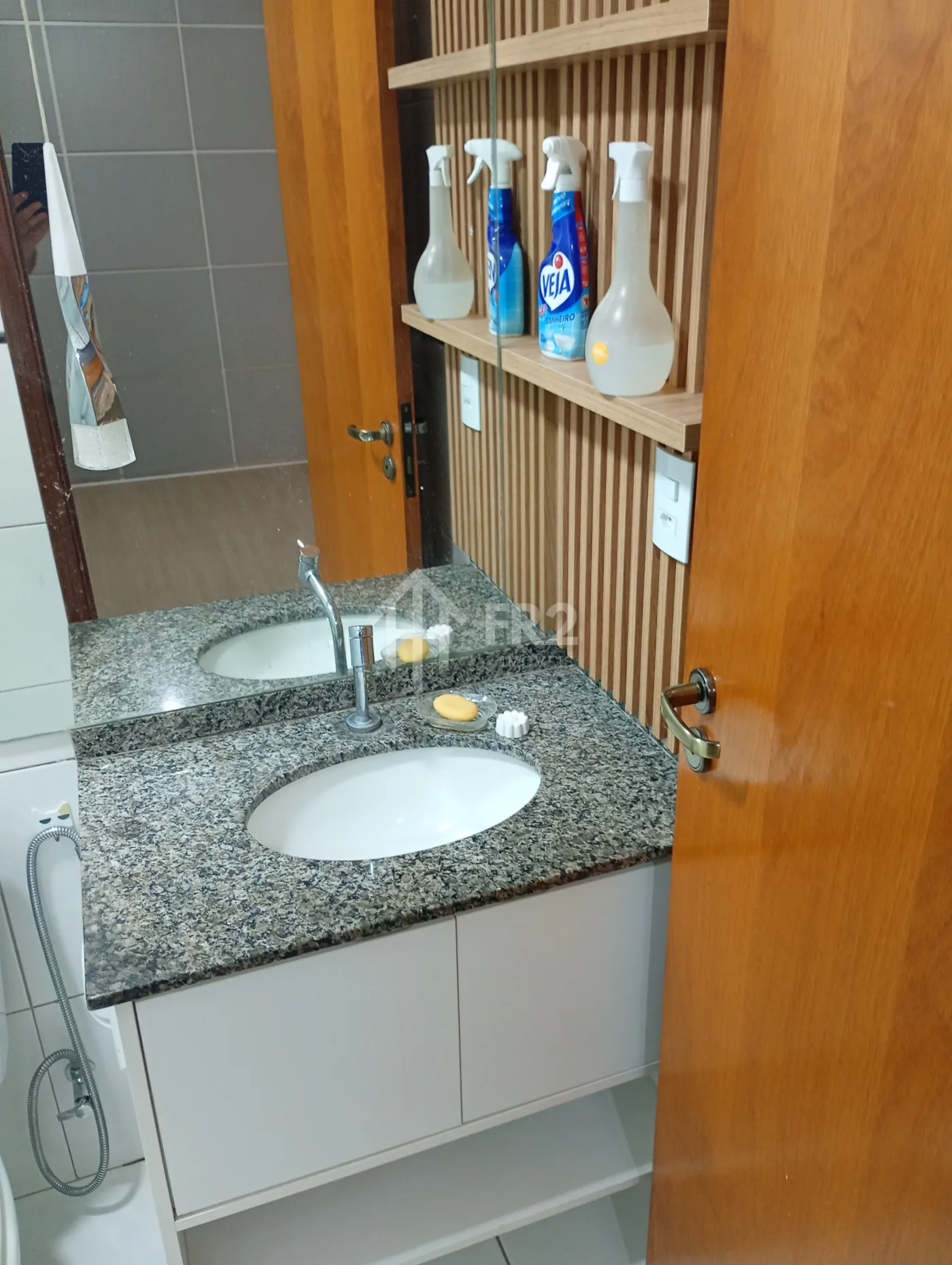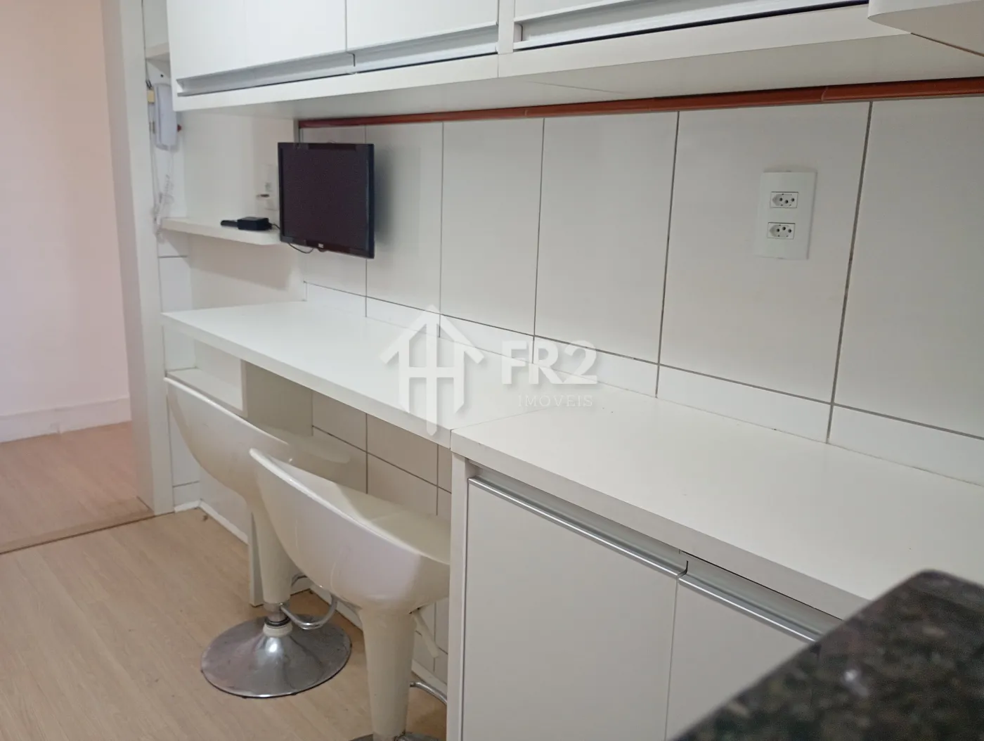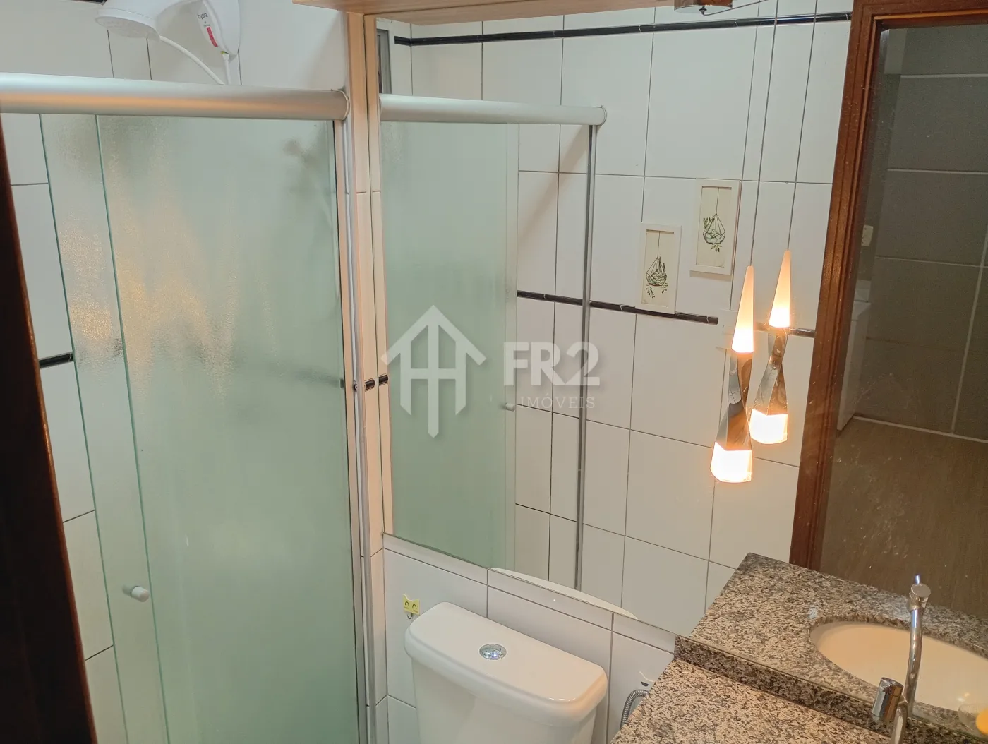 Os banheiros são completos, com box em vidro e gabinetes planejados, oferecendo funcionalidade e um toque moderno. A cozinha e a área de serviço são ricas em armários, ideais para o dia a dia com praticidade e excelente aproveitamento de espaço.