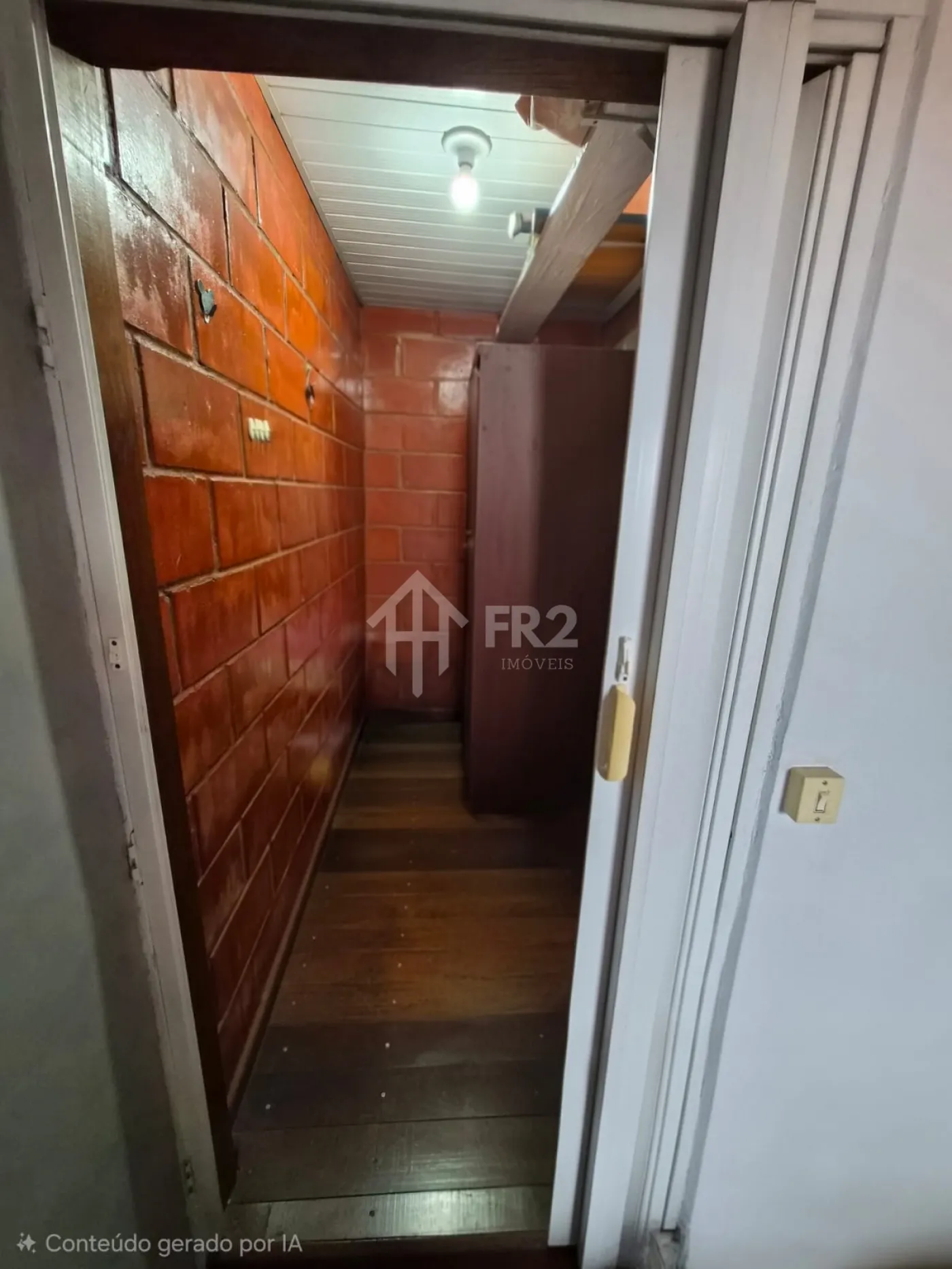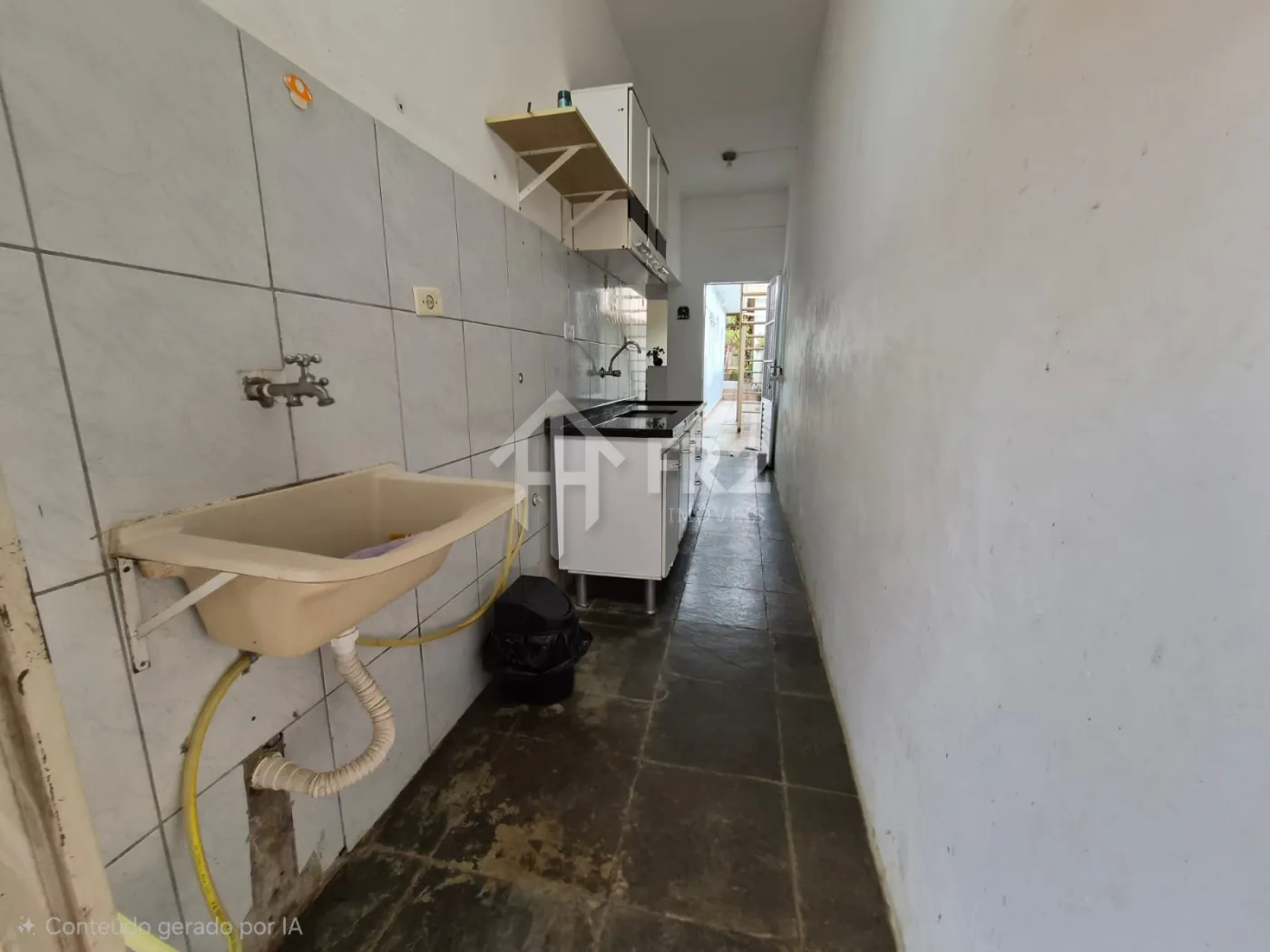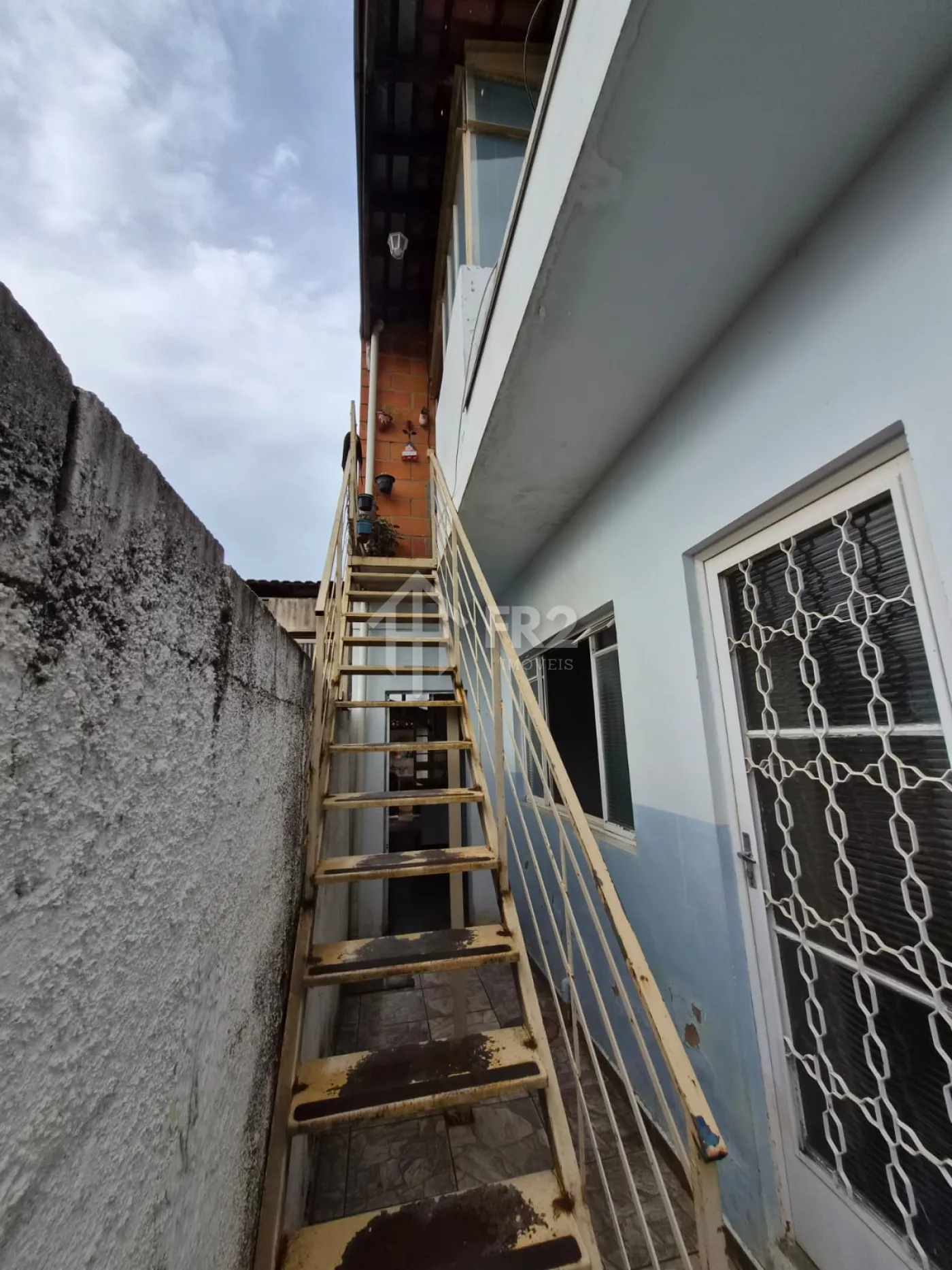 Casa 1° andar: escada de acesso, 01 cozinha, 01 sala, 01 banheiro, 01 pequeno clouset, 01 dormitório, 01 varanda